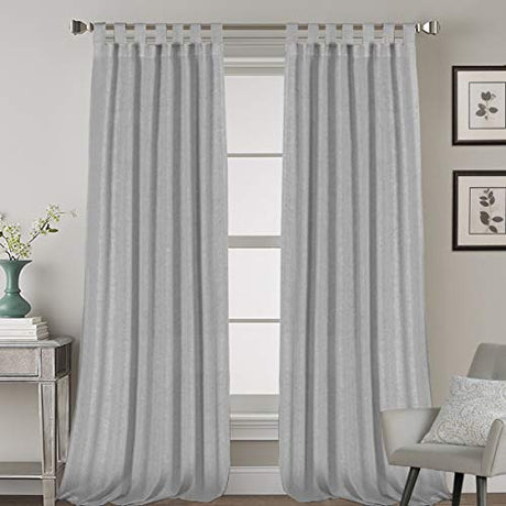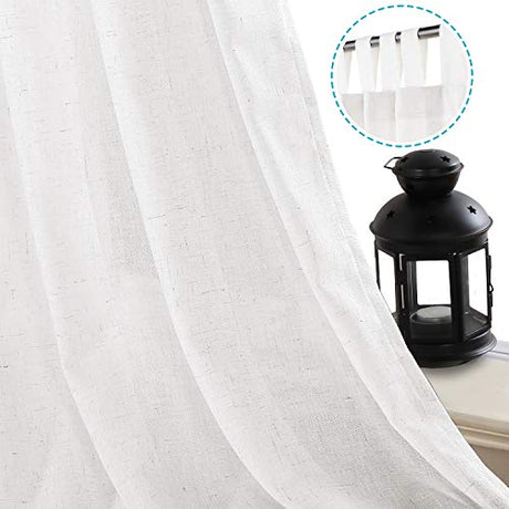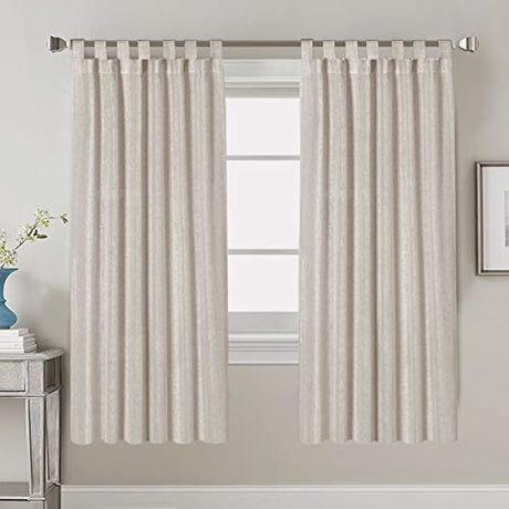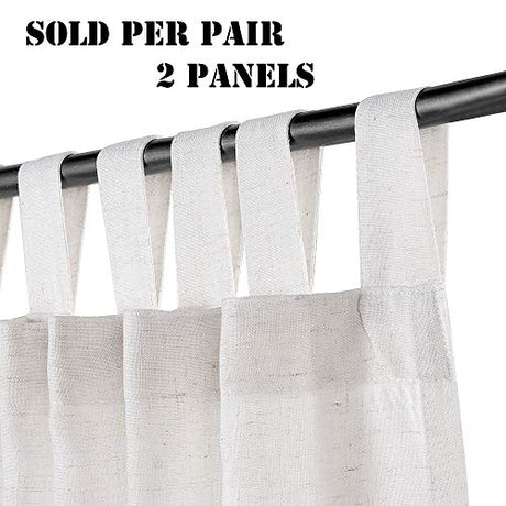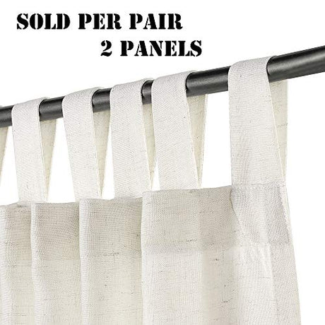 Linen Curtains Natural Linen Blended Tab Top Light Filtering Sheer Curtains