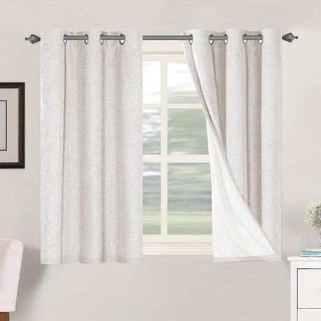 Linen Blackout Thermal Insulated White Liner Grommet Top Curtains