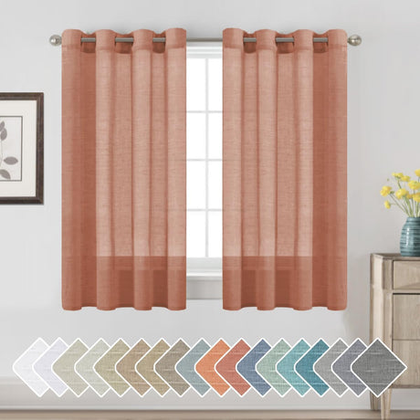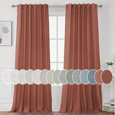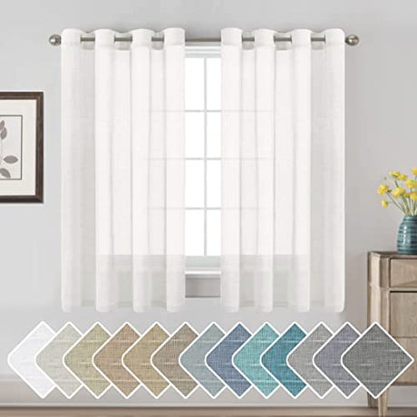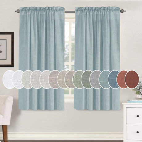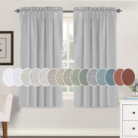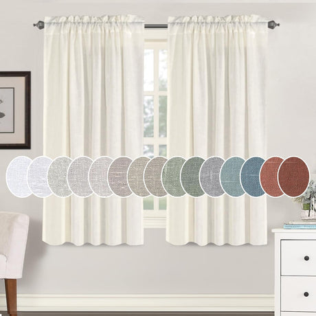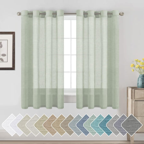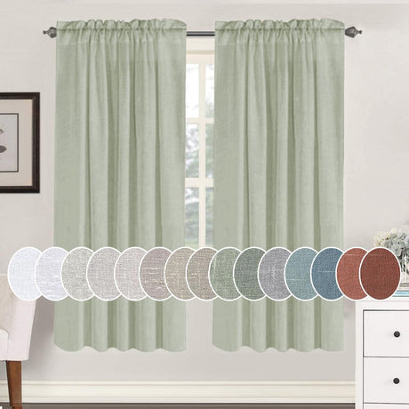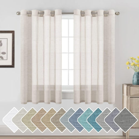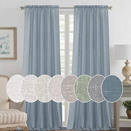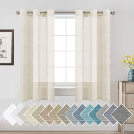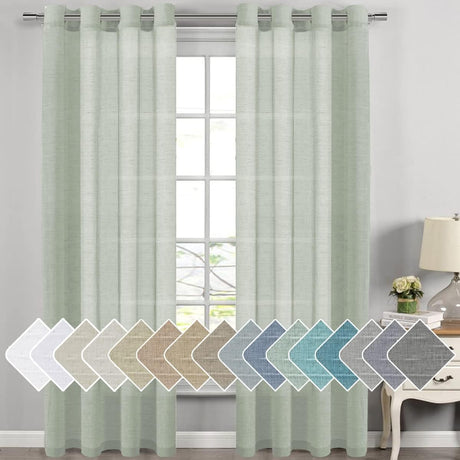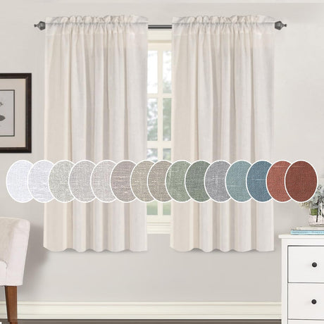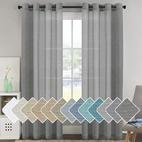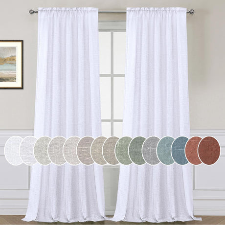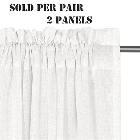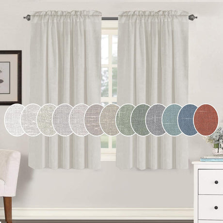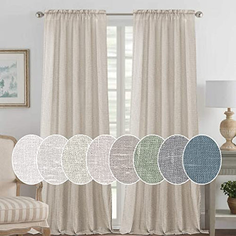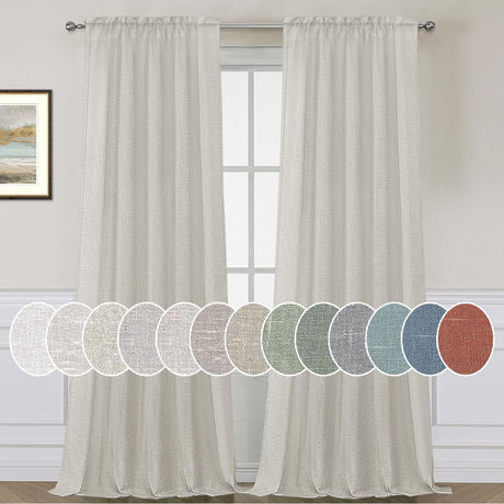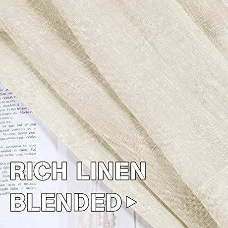 Natural Linen Blended Curtains Light Filtering Rod Pocket Sheer Curtains