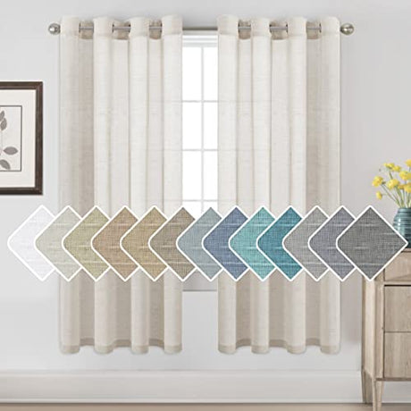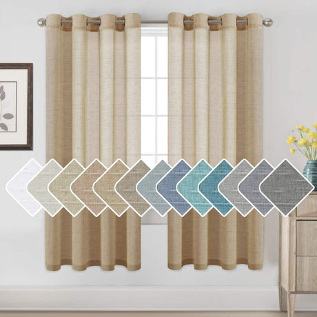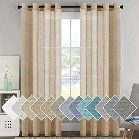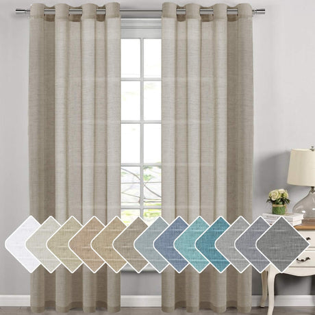 Natural Linen Semi Sheer Curtains Grommet Soft Privacy Drapes