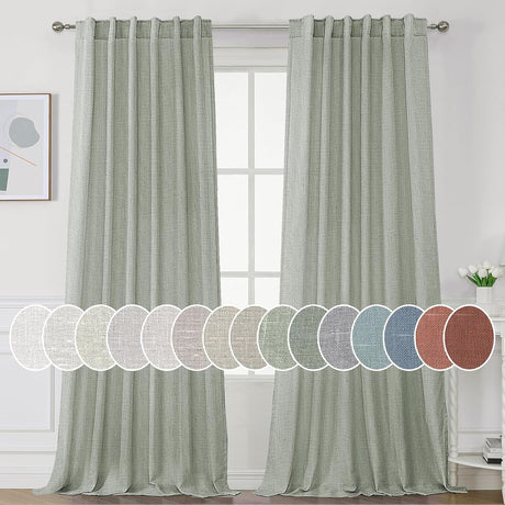Natural Linen Tab Loop Pocket Semi Sheer Light Filtering Curtains