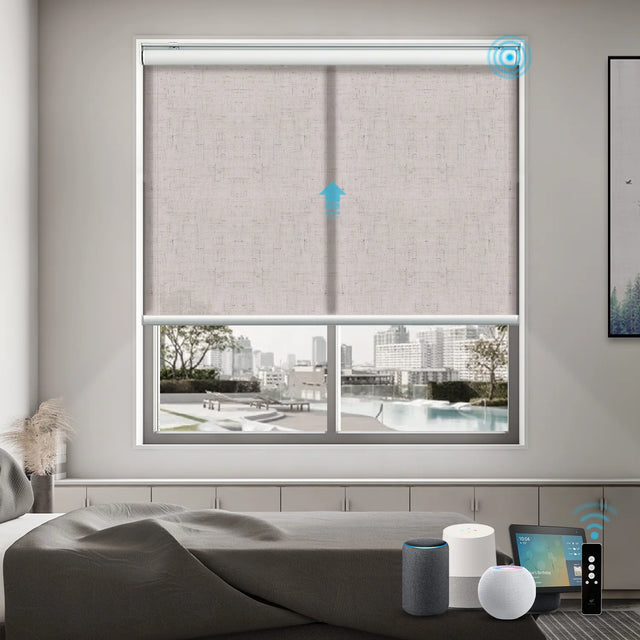 Motorized Light Filtering Roller Shades 70% Blackout Linen