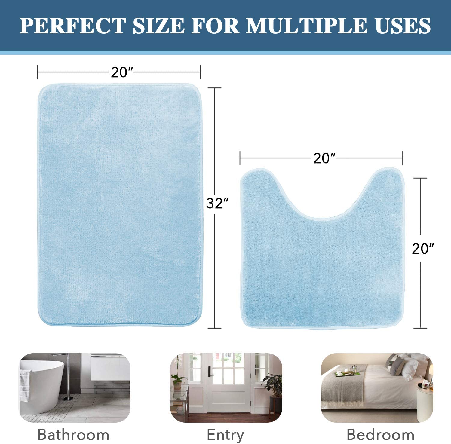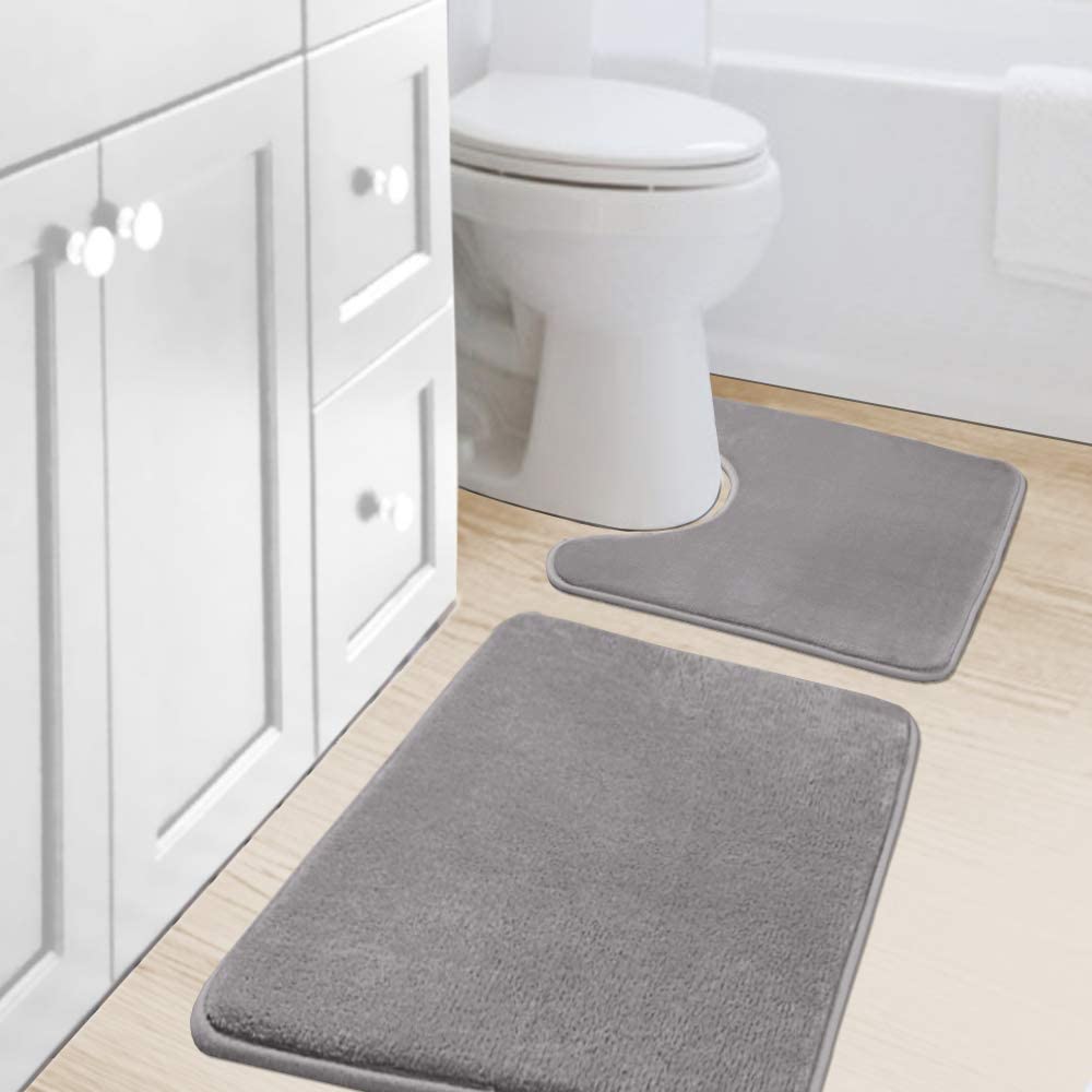 ULTRA COMFORT: Each pack including 2 bath mats (20" x 32" Rectangle and 20" x 20"U shaped). Crafted from super soft flannel with 1" thick memory foam, give your feet the gift of massage service, transform your bathroom into a home spa oasis