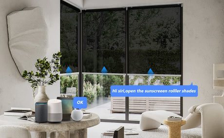 Motorized Light Filtering Roller Shades 50% Blackout PVC Free Sunscreen