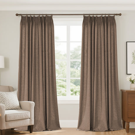 Marisel Herringbone Pinstripe Premium Linen Blended Curtain Pleated