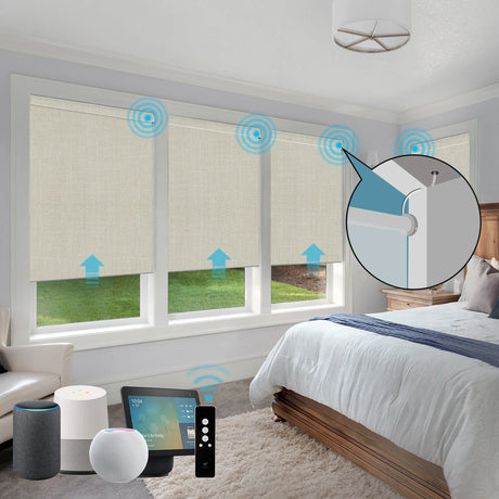 Motorized Light Filtering Roller Shades 70% Blackout Linen