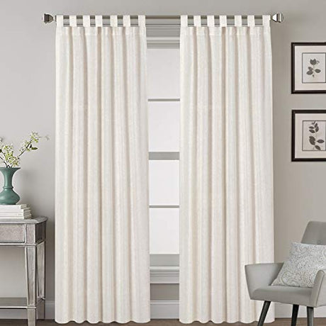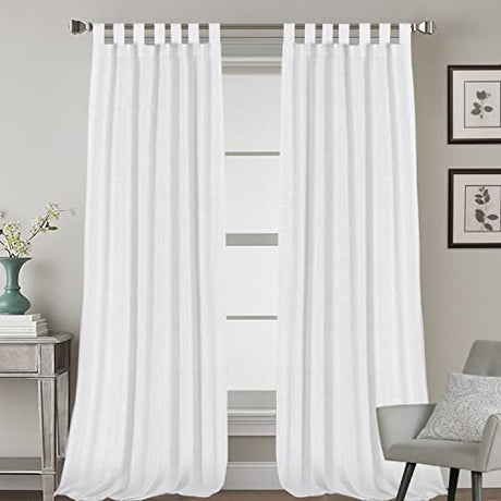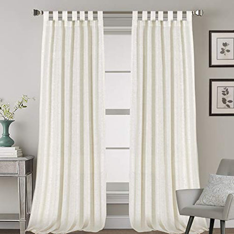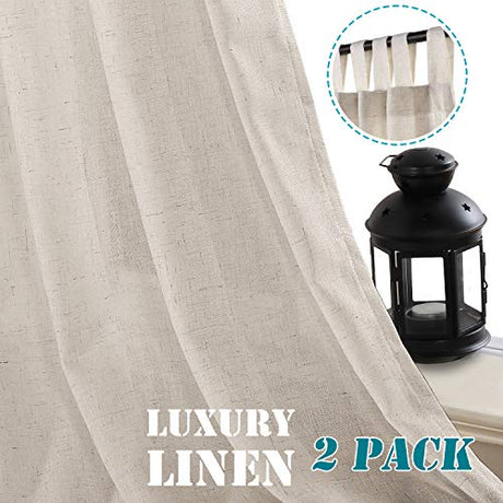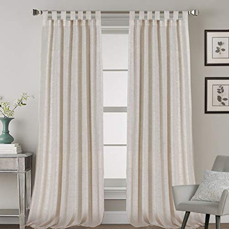 Linen Curtains Natural Linen Blended Tab Top Light Filtering Sheer Curtains