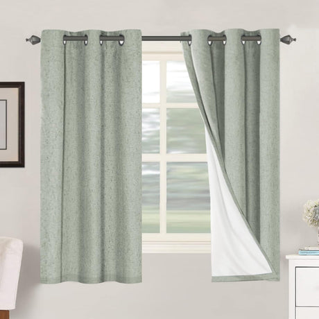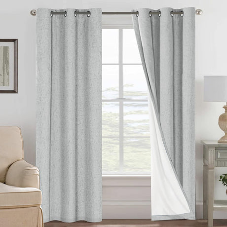Linen Blackout Thermal Insulated White Liner Grommet Top Curtains