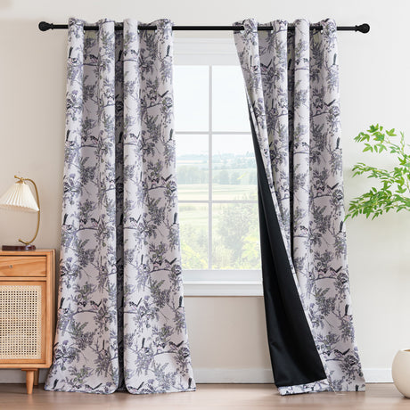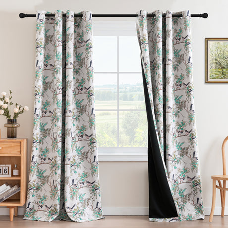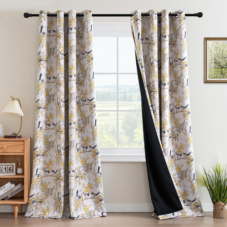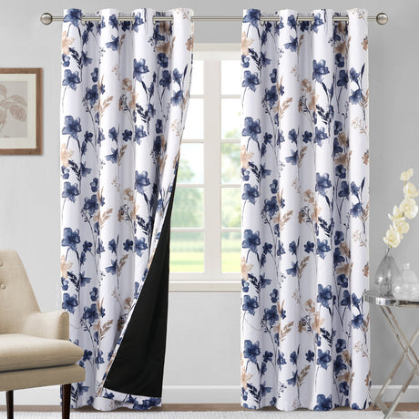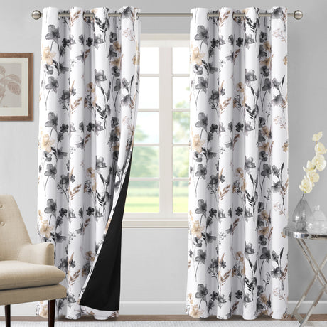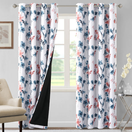 Blackout Thermal Insulated Printed Floral Grommet Curtains