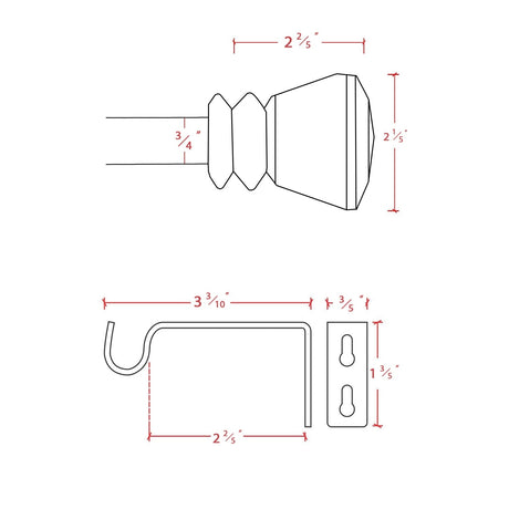 Contemporary Single Adjustable Window Curtain Rod, 3/4 Inch Diameter with Acrylic Diamond Finials,