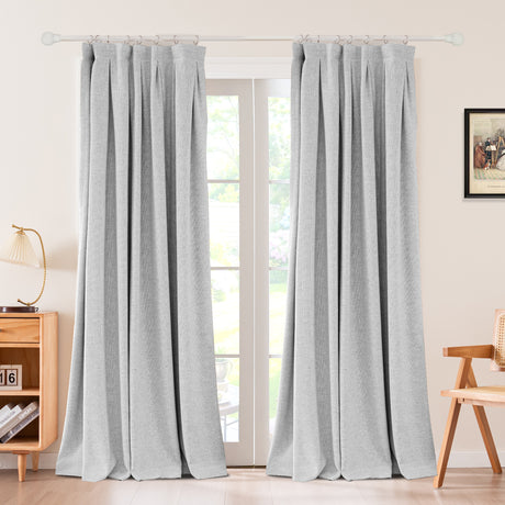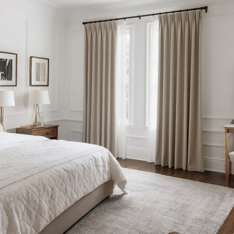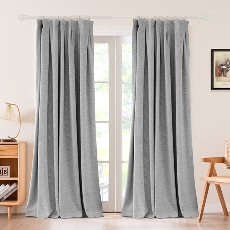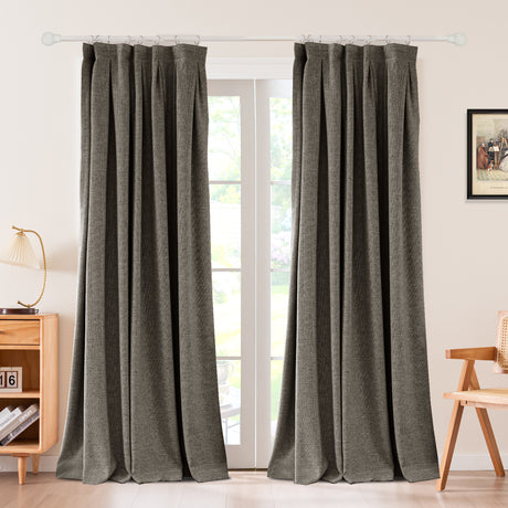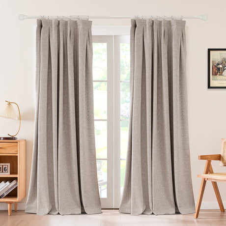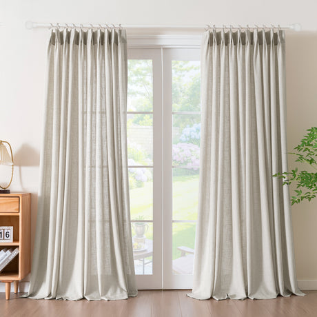Aurevia Grid-Weave Linen Curtain Drapery Pleated