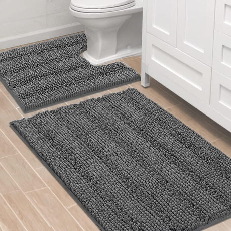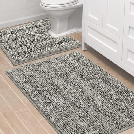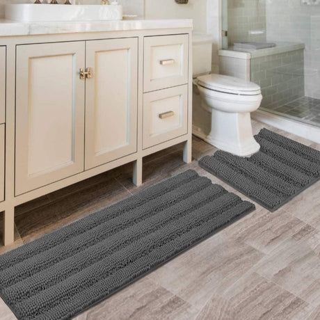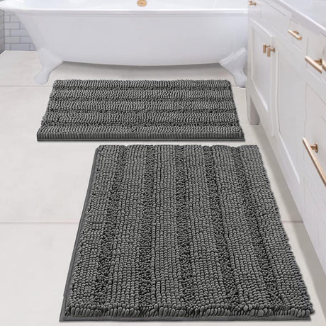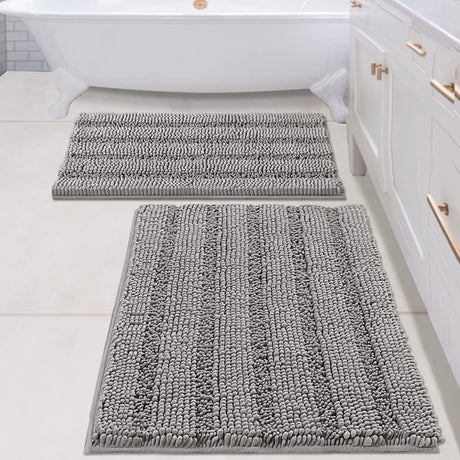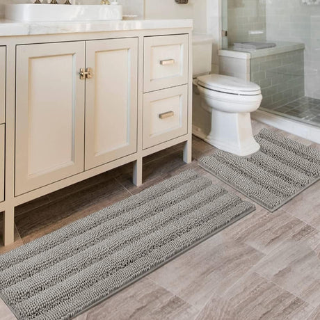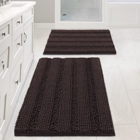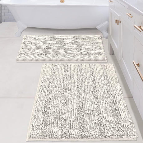 1pc Bath Rugs for Bathroom Non Slip Bath Mats Extra Thick Chenille Striped Rug
