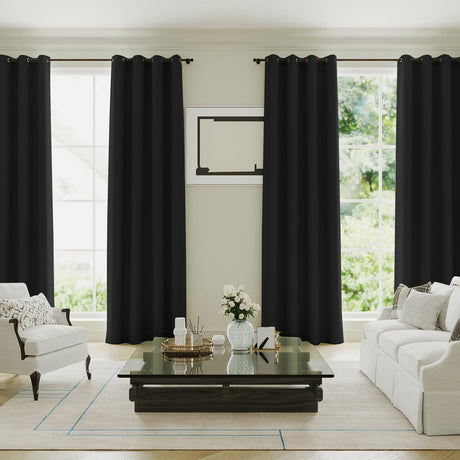 100% Blackout Black Liners Grommet Solid Color Curtains