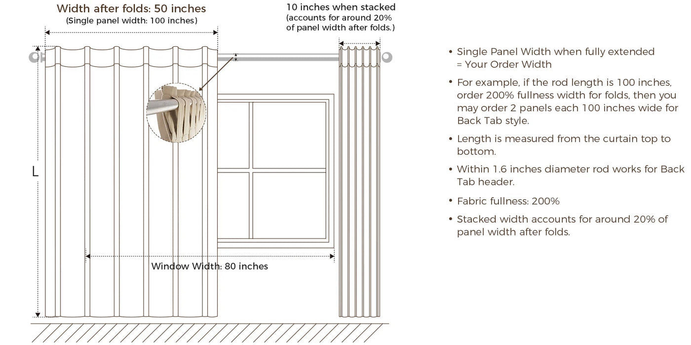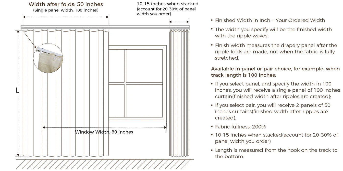 - 2x Built-in Fullness for pinch pleat, tailor pleat, inverted pleat, and goblet style.