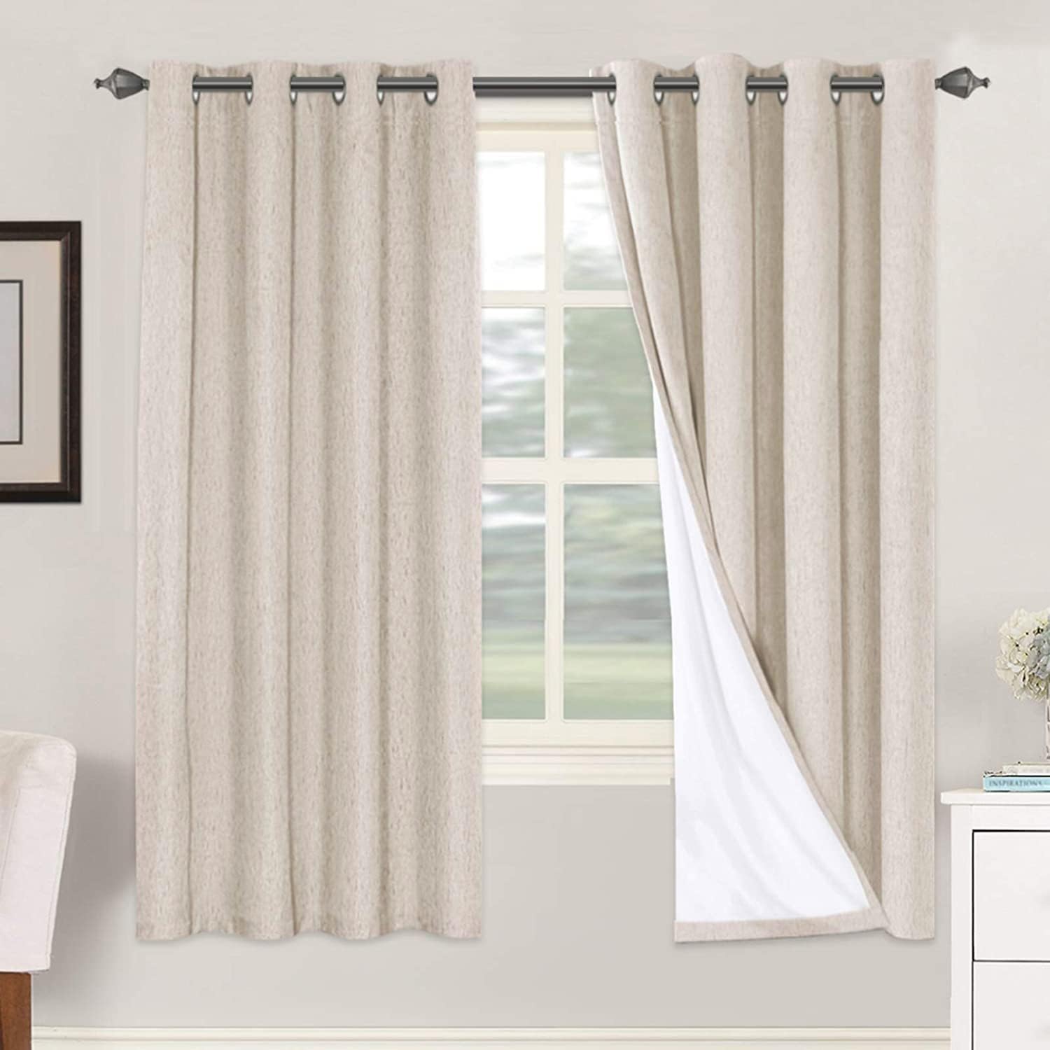 Linen Blackout Thermal Insulated White Liner Grommet Top Curtains
