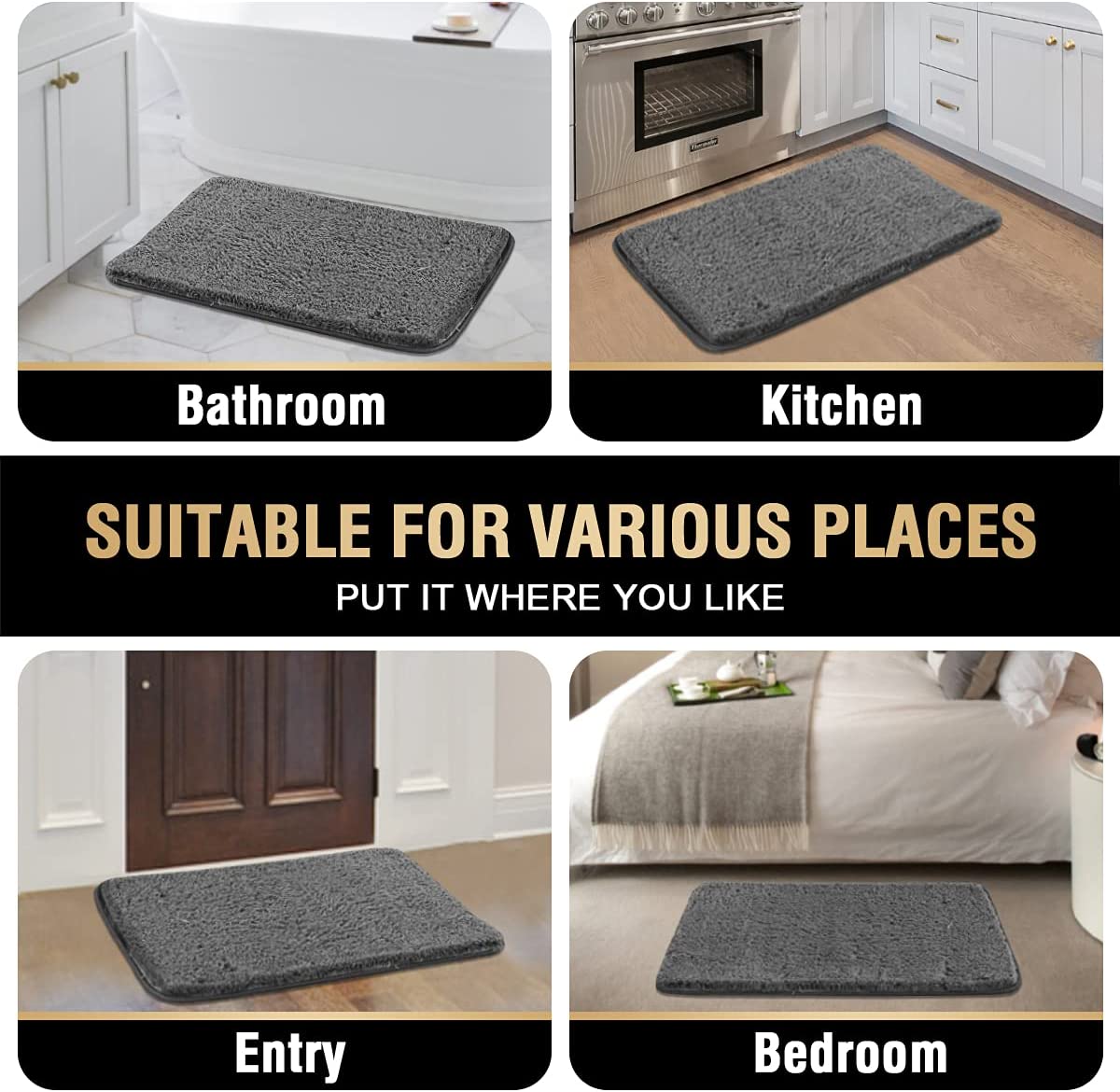 ULTRA SOFT: Crafted from premium microfiber high quality materials, make the bath mats amazing soft and cozy like a comfortable quilt protector for your feet. Thousands of individual polyester micro fiber shags, sink your toes into the comfortable contentment of a bathroom floor mat from threshold