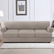 H.VERSAILTEX 4 Pieces Checkerboard Slipcovers Stretch with 3 Individual T Cushion Covers for Living Room(3 Cushion Sofa, Taupe)