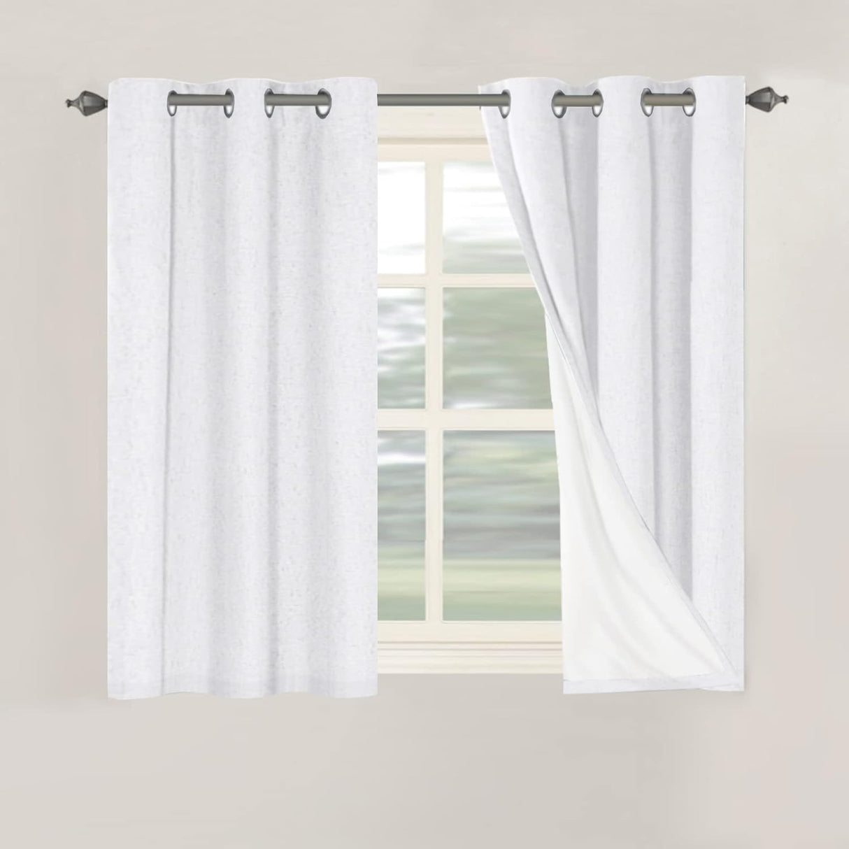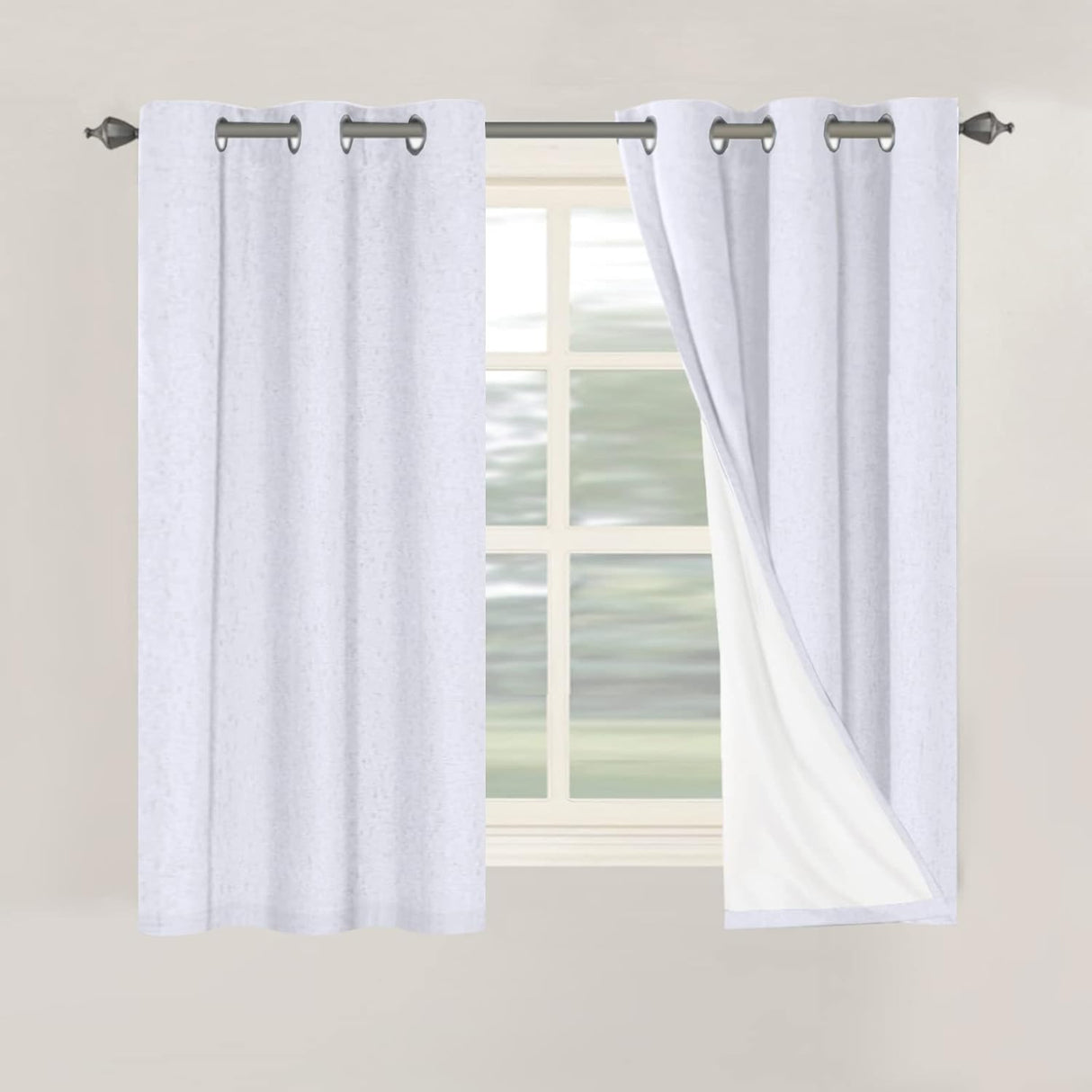 Linen Blackout Thermal Insulated White Liner Grommet Top Curtains