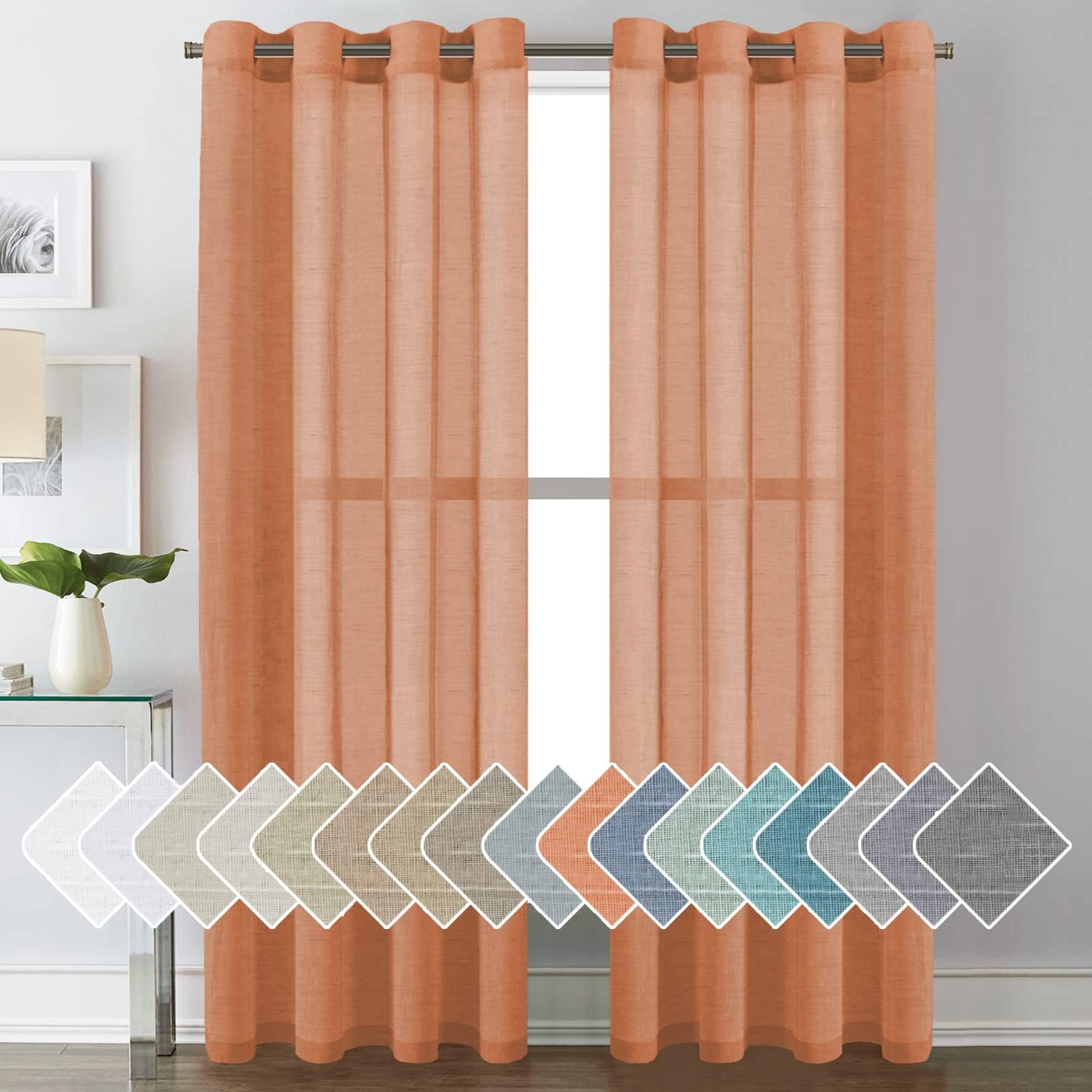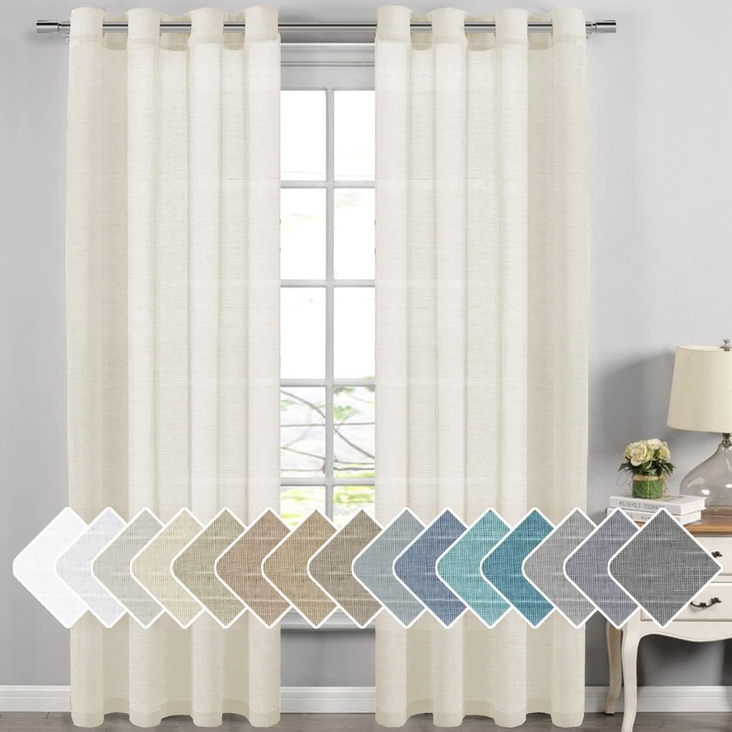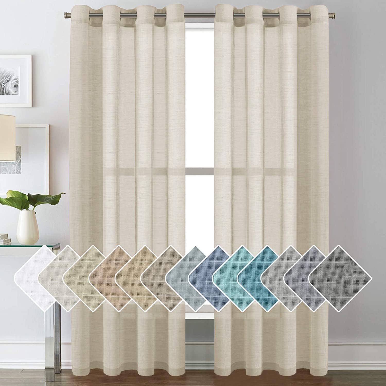 Natural Linen Semi Sheer Curtains Grommet Soft Privacy Drapes