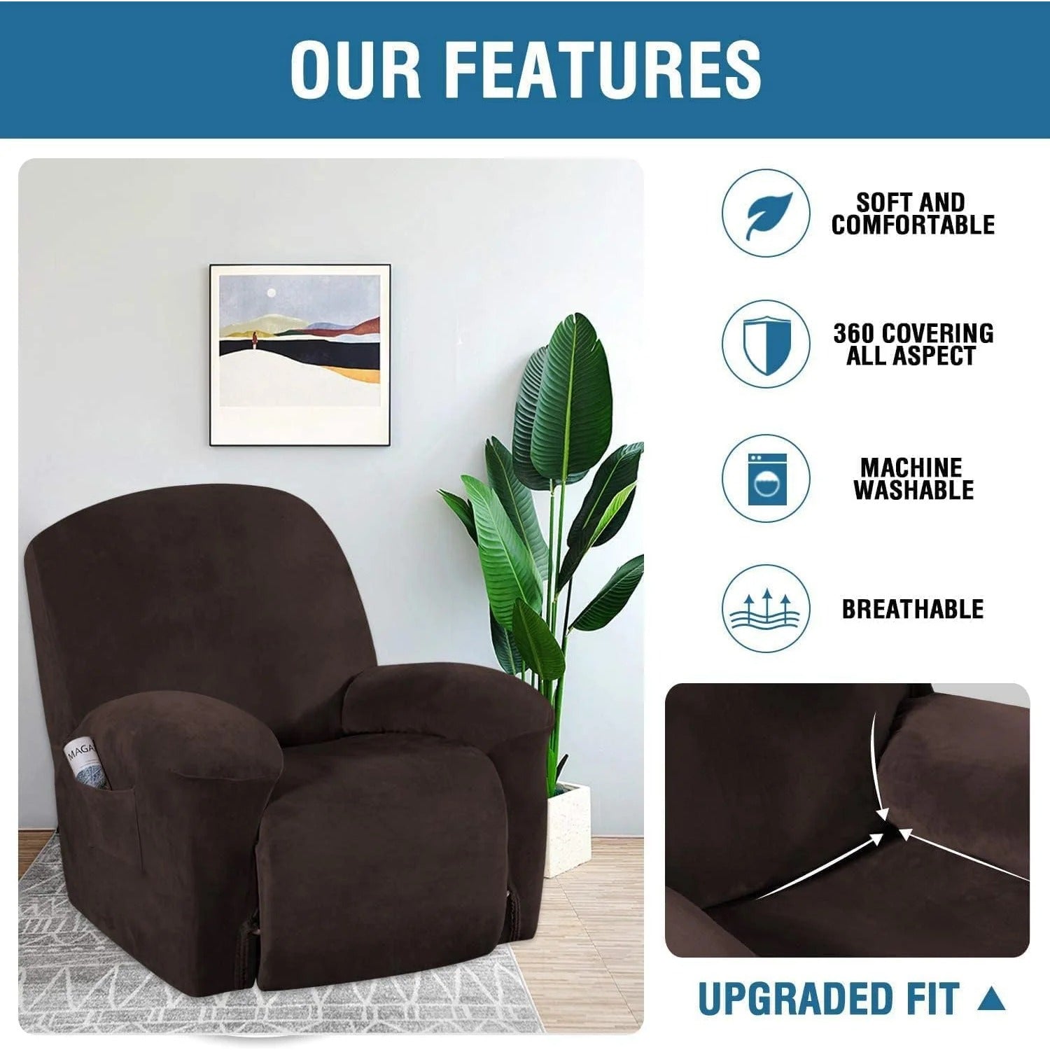 Velvet Plush Slip Covers for Recliners with Arms 1-Piece Stretch Recliner